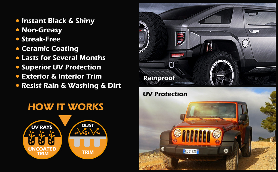 The REALINN Plastic Restorer utilizes an advanced ceramic formula to effectively remove oxidation and restore faded plastic, vinyl, and rubber surfaces to a deep, glossy black, providing long-lasting durability and protection. This easy-to-apply, non-greasy solution creates a rain and UV-resistant coating, ensuring your vehicle’s trim stays vibrant and protected against the elements.